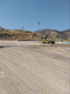 Η ανακατασκευή των γηπέδων ποδοσφαίρου, βόλεϊ και μπάσκετ προχωρά σε ικανοποιητικό βαθμό, εξασφαλίζοντας την πλήρη αναβάθμιση των υποδομών ώστε να ανταποκρίνονται στις σύγχρονες ανάγκες των παιδιών, ενισχύοντας παράλληλα το πνεύμα του αθλητισμού και της ομαδικότητας. Επιπλέον, διανοίγονται νέες οδοί πρόσβασης, οι οποίες εγγυώνται την άνετη και ασφαλή μετακίνηση όλων των επισκεπτών προς και από τις κατασκηνώσεις. Ο περιβάλλων χώρος αναμορφώνεται πλήρως, μεταμορφώνοντάς τον σε ένα φιλόξενο και ελκυστικό περιβάλλον που θα προάγει τη δημιουργικότητα, τη χαρά και τη μάθηση.